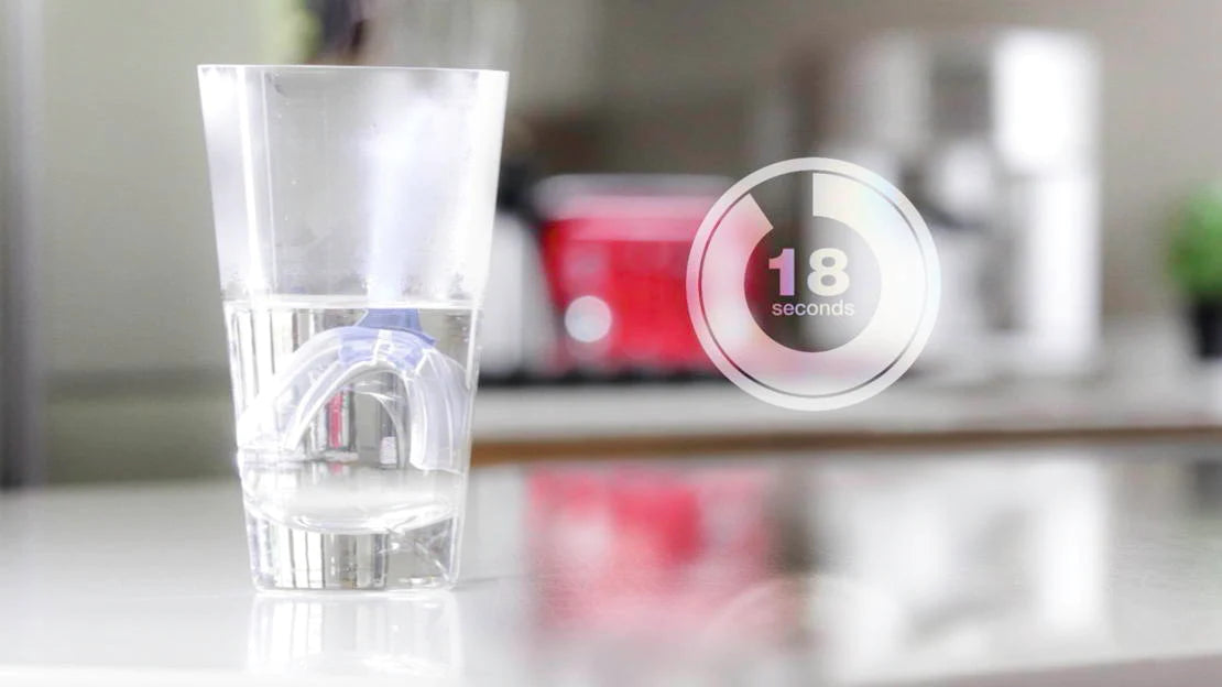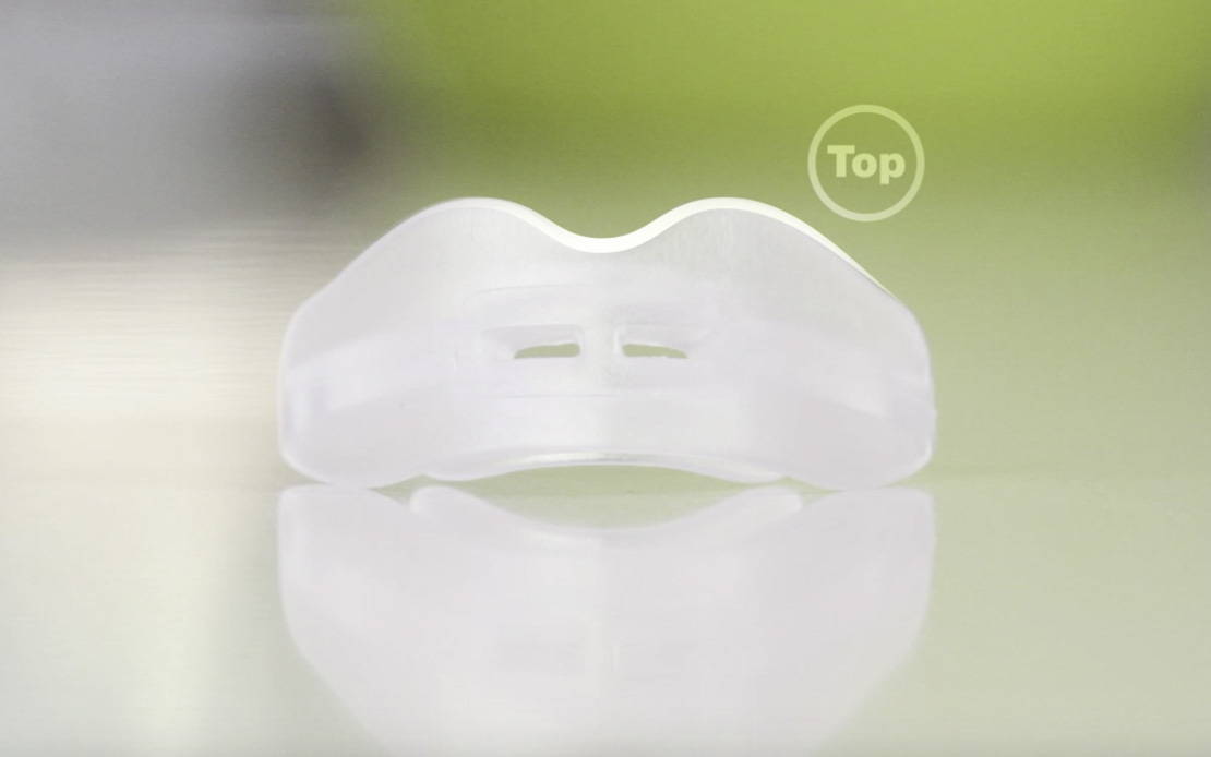 - Plaats eerst de snurkbeugel op je onderkaak.