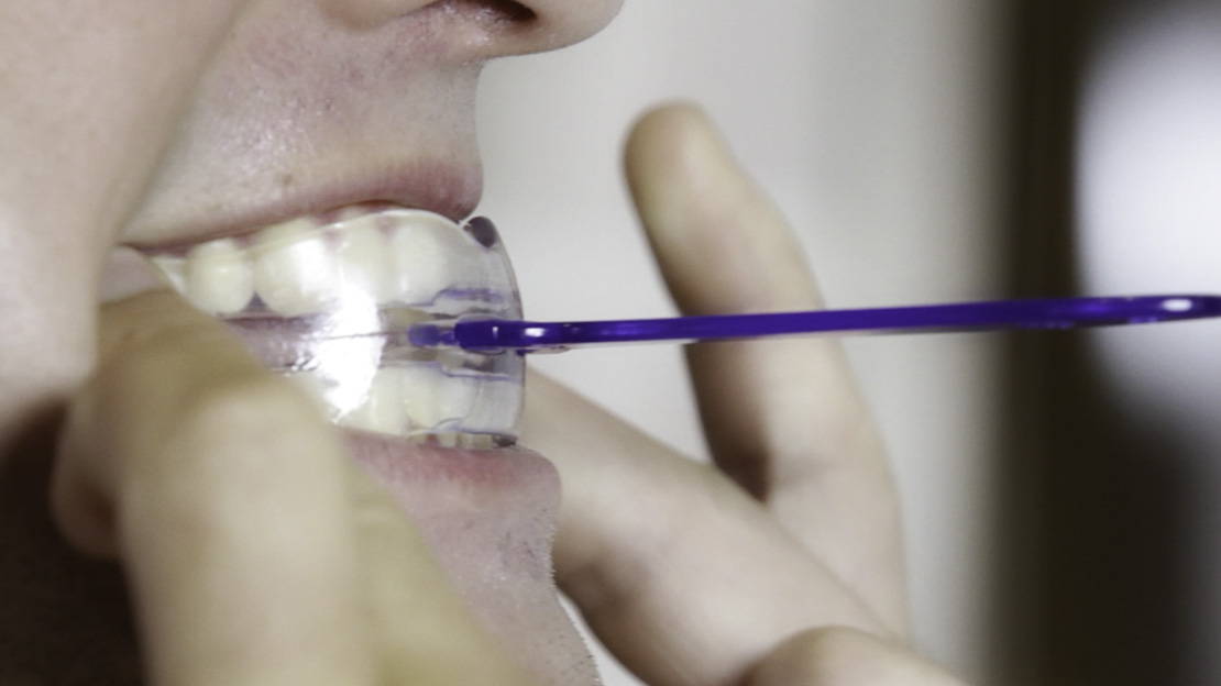 - Plaats de anti-snurkbeugel in je mond.